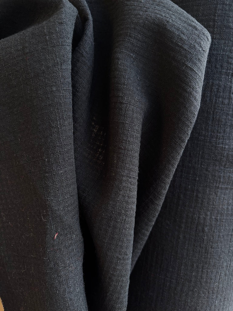 Deadstock black micro waffle made from a blend of linen and cotton. Beautiful structure and great for showing off gathers and silhouettes