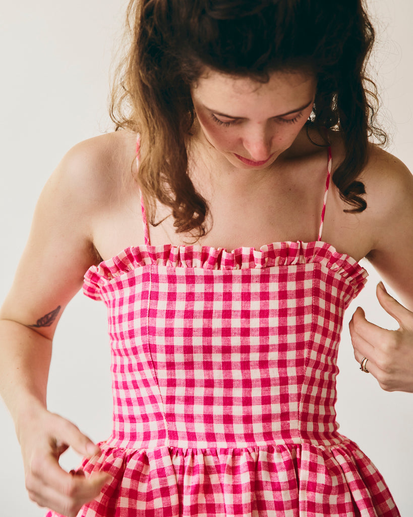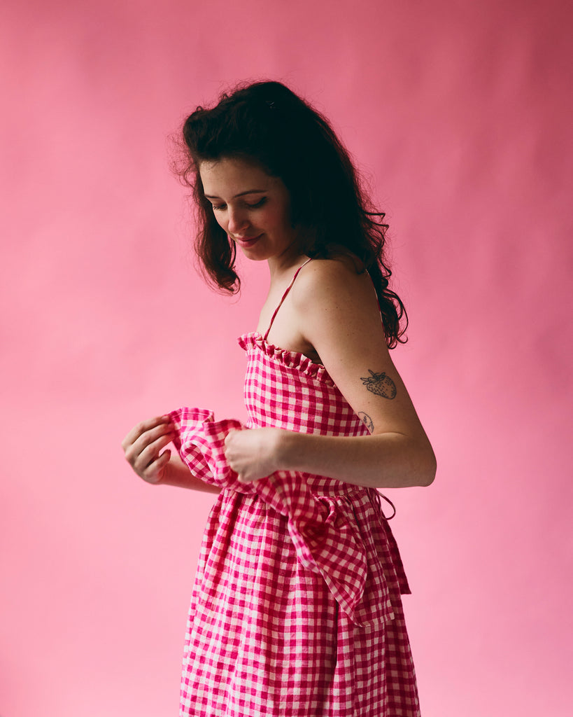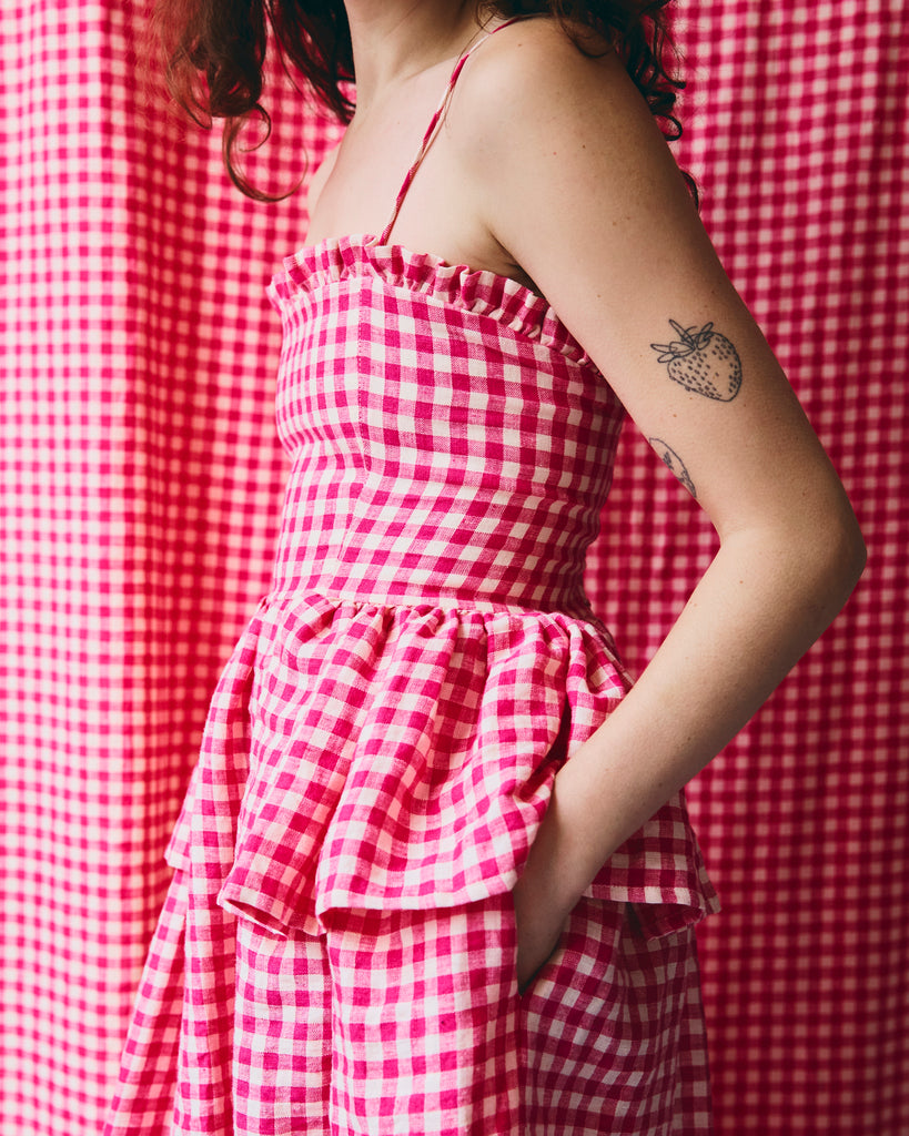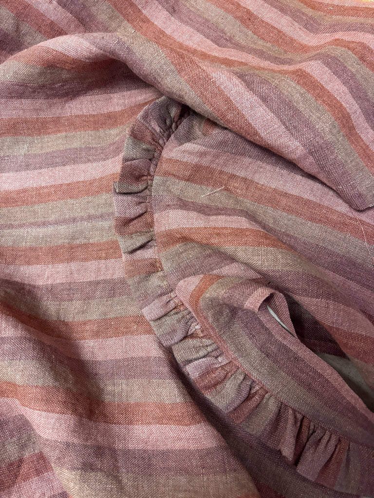 All our fabrics are either deadstock or new made from natural fibers. We source the deadstocks from UK and Europe. Our linens are woven to order for us in Lithuania from EU Flax.