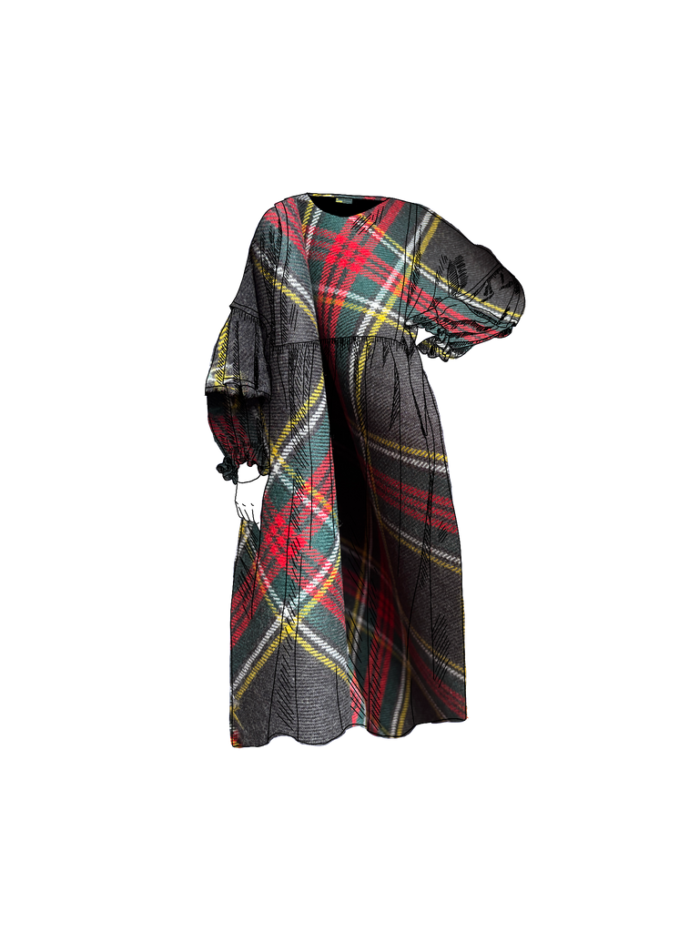 Grey Wool Tartan is 100% wool viscose is lightweight, incredibly cosy and from one of my Italian deadstock suppliers. The drape of this fabric is soft and the structure isn’trigid creating softer shapes while also being super soft.