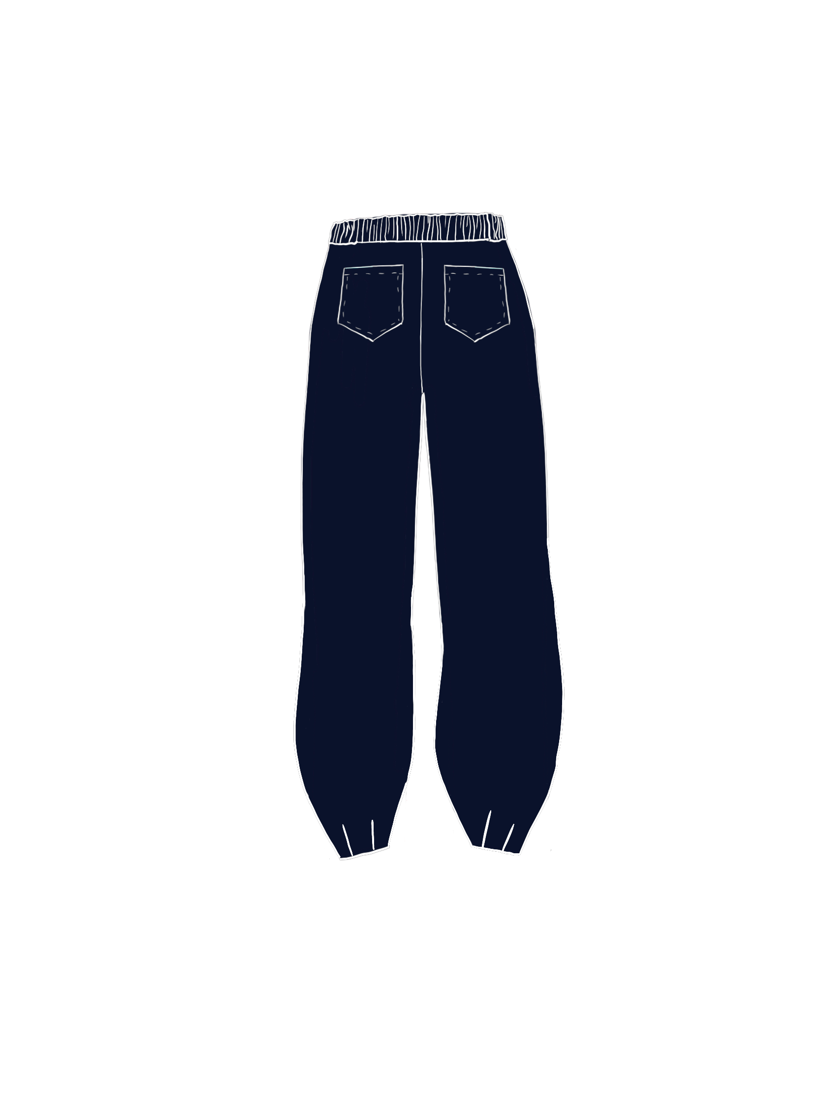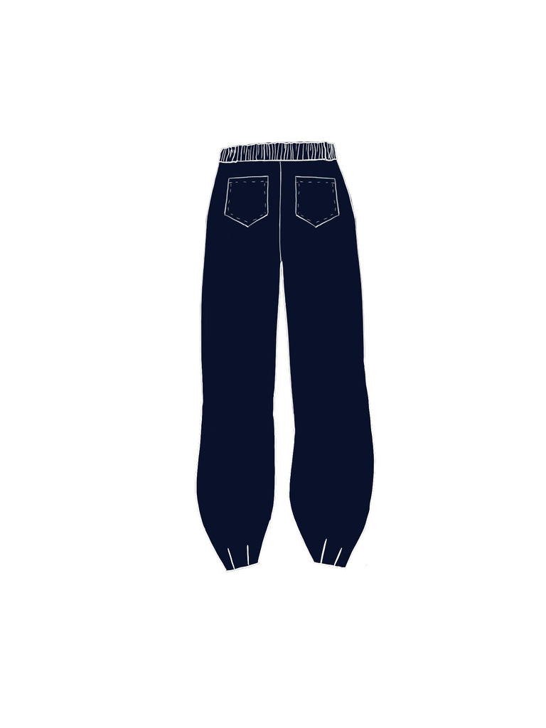 Two inside pockets, two Patch back pockets, Elasticated waist with flat front for a tailored look, 2 leg design options: Wide leg or barrel leg with 4 darts at the hem to cinch the fabric in.