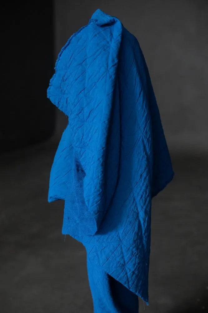 This is a vibrant and bright cobalt blue coloured Quilted Jacquard with squares and triangles stitching and a complementary ribbing.