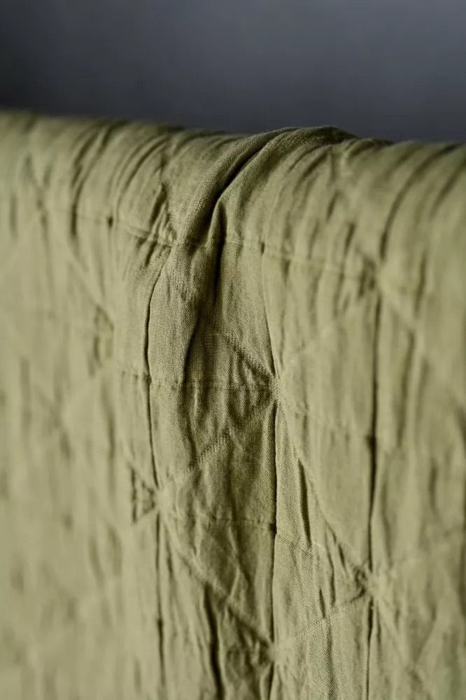 This is a pale khaki green coloured Quilted Jacquard with squares and triangles stitching and a matching ribbing.