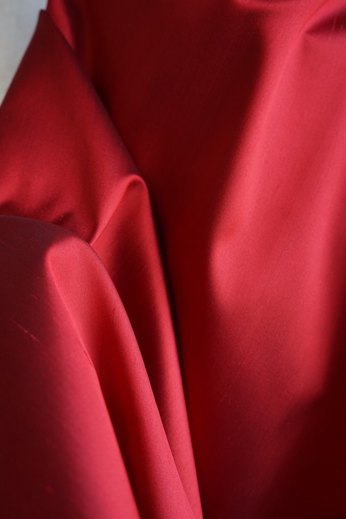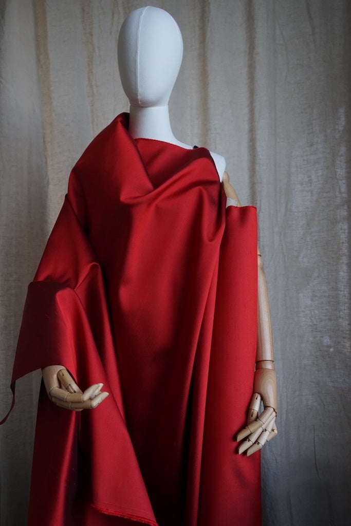 This is a deadstock 100% Silk from Italy. It's a vibrant red and a stiff finish so will add drama and volume to my designs.