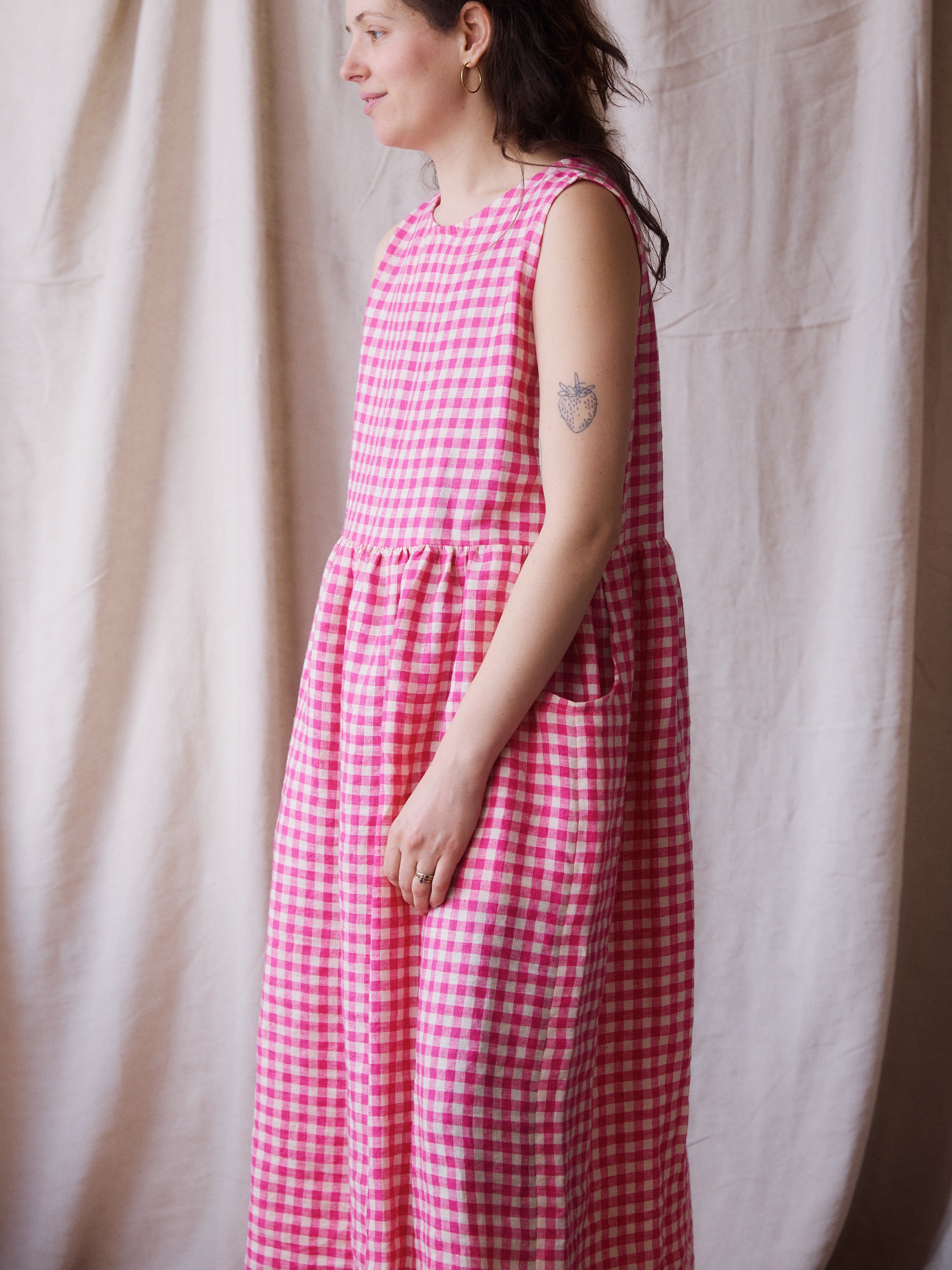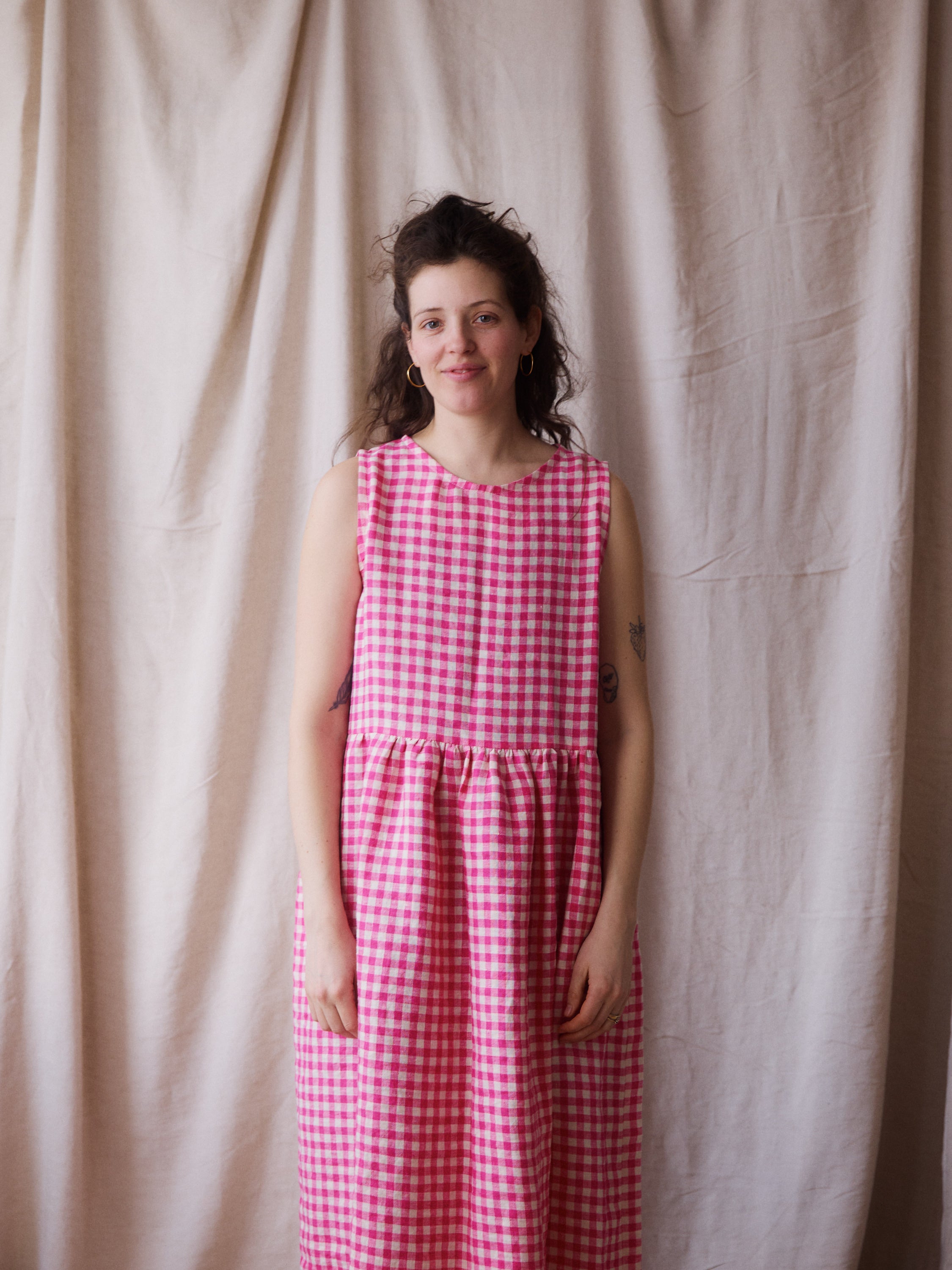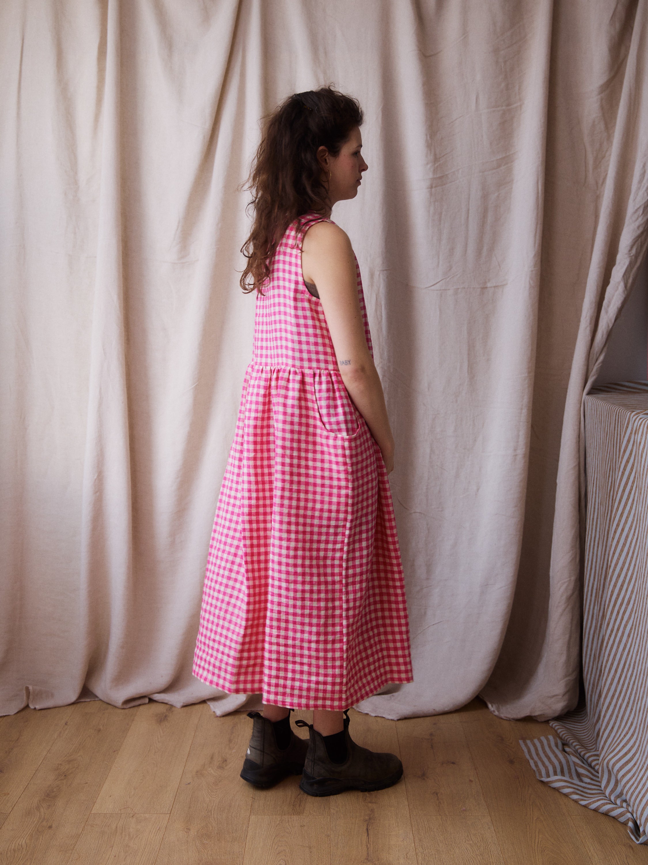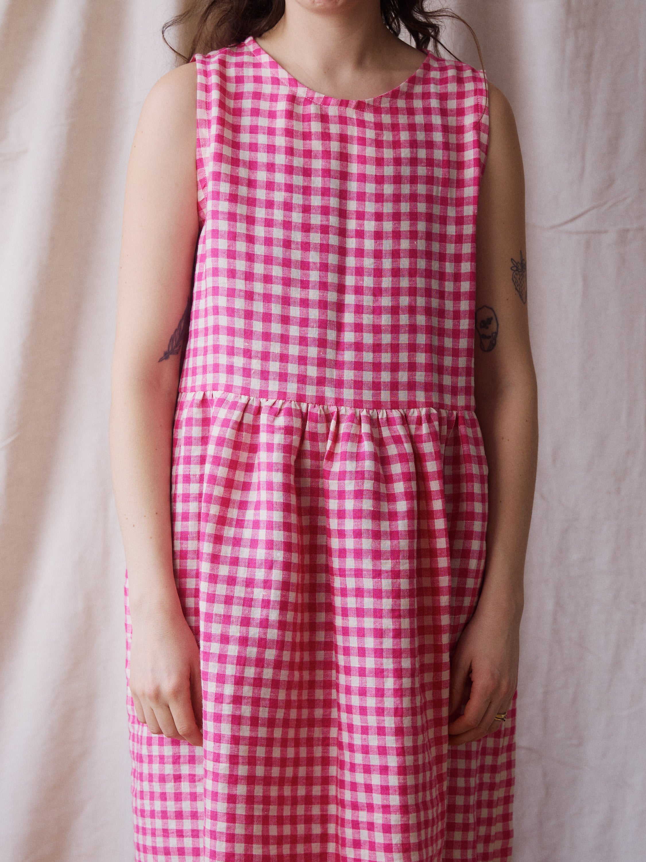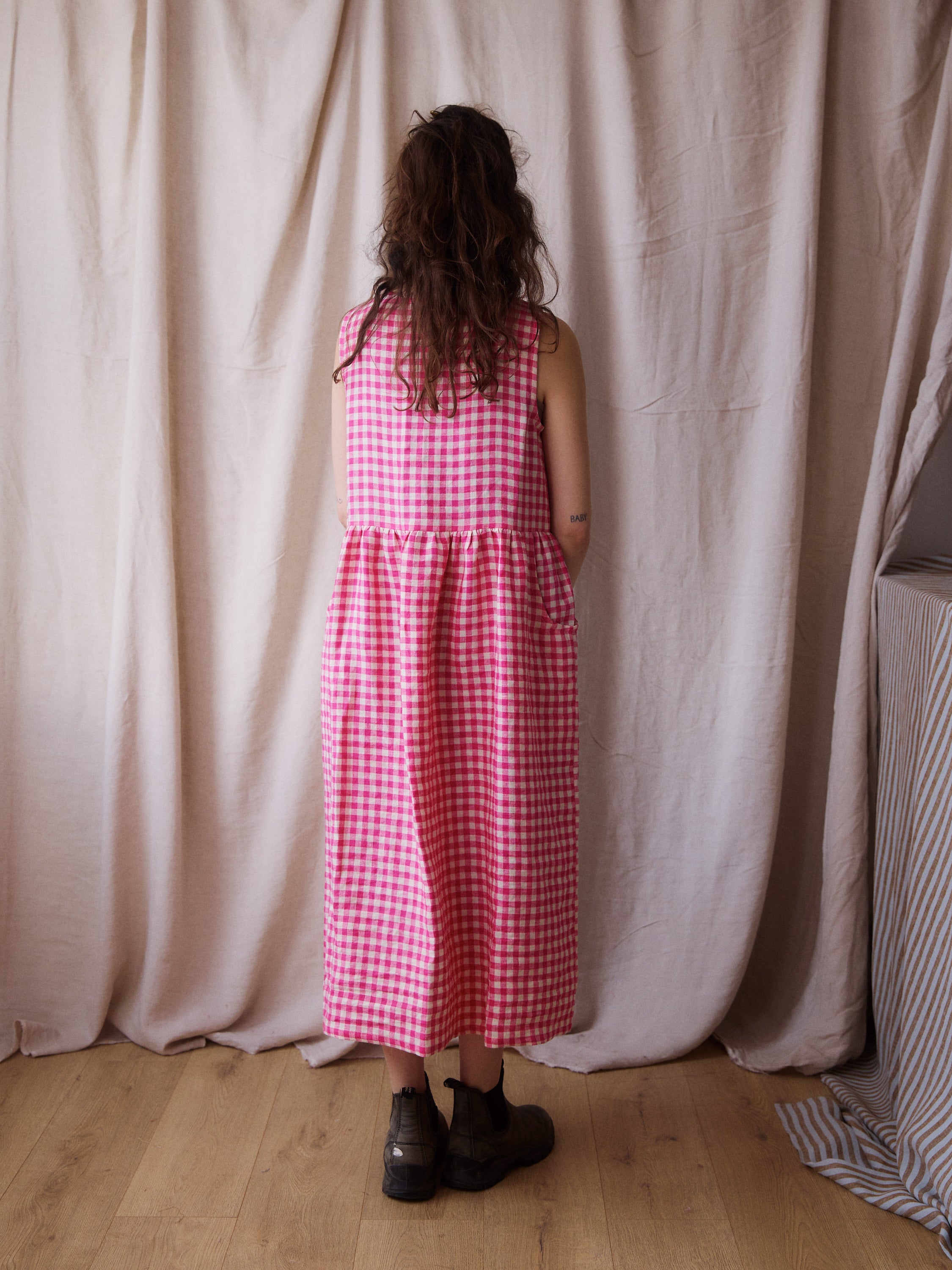 Luna Dress - Pink Gingham Linen - Small - RTS