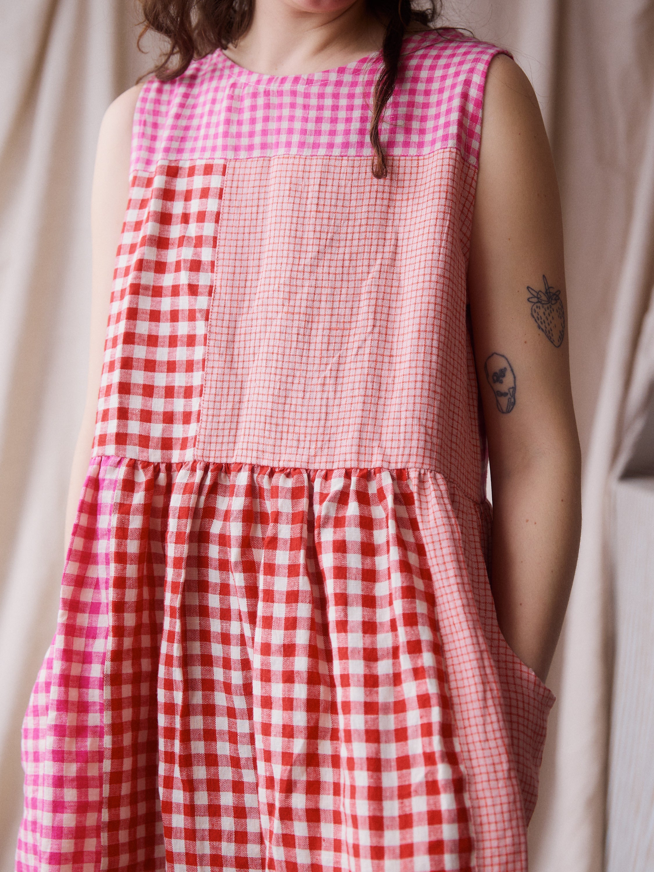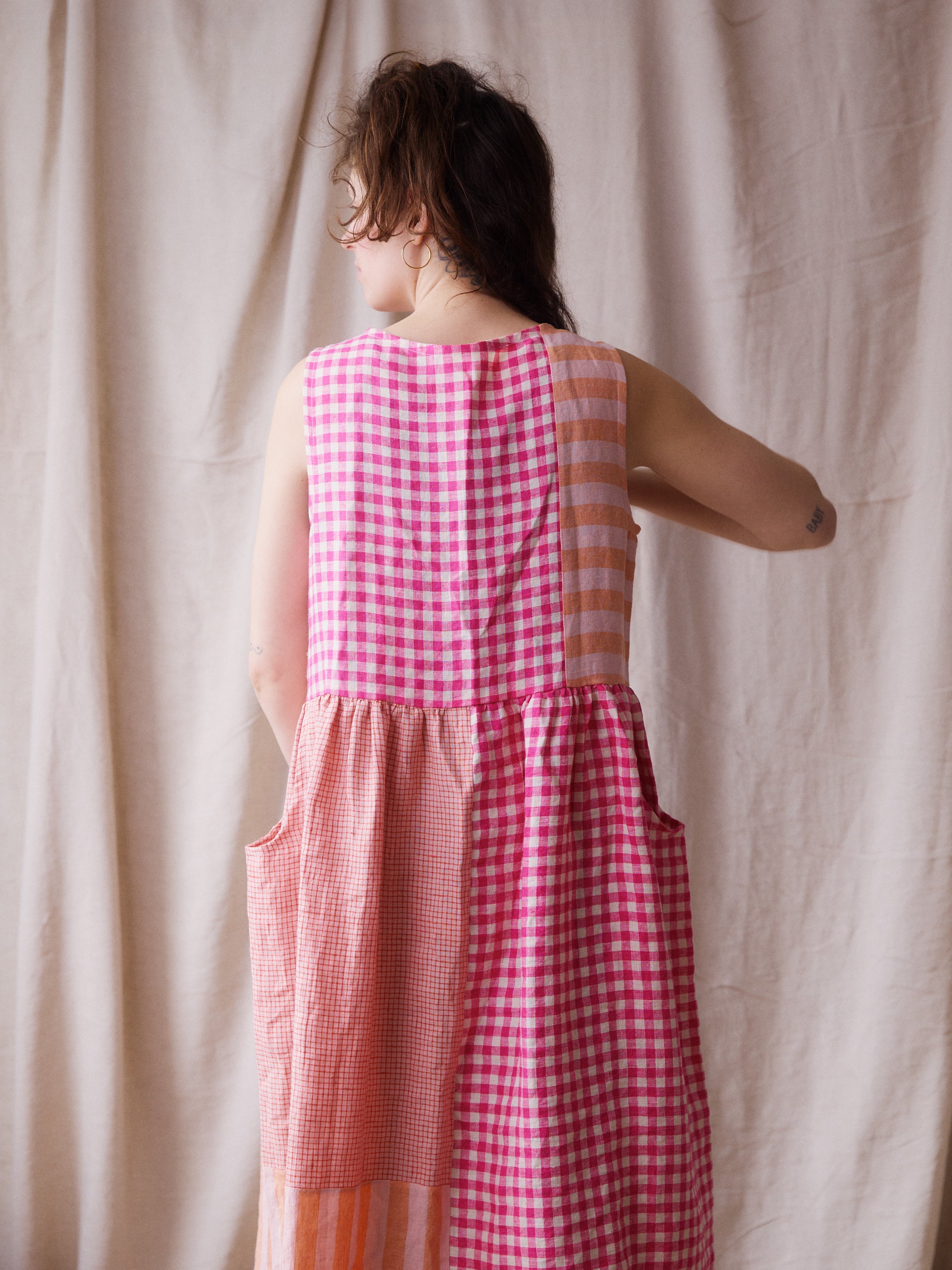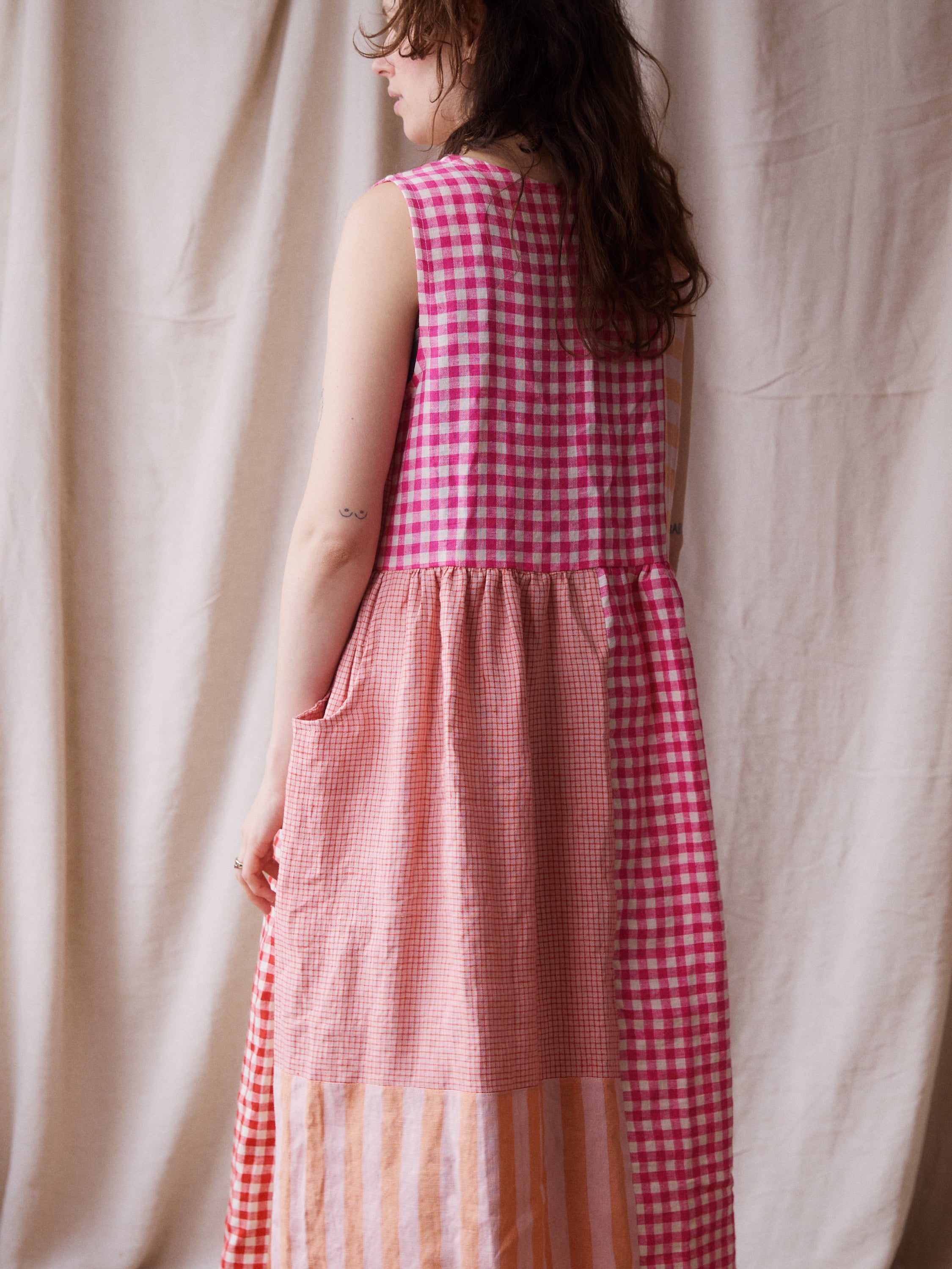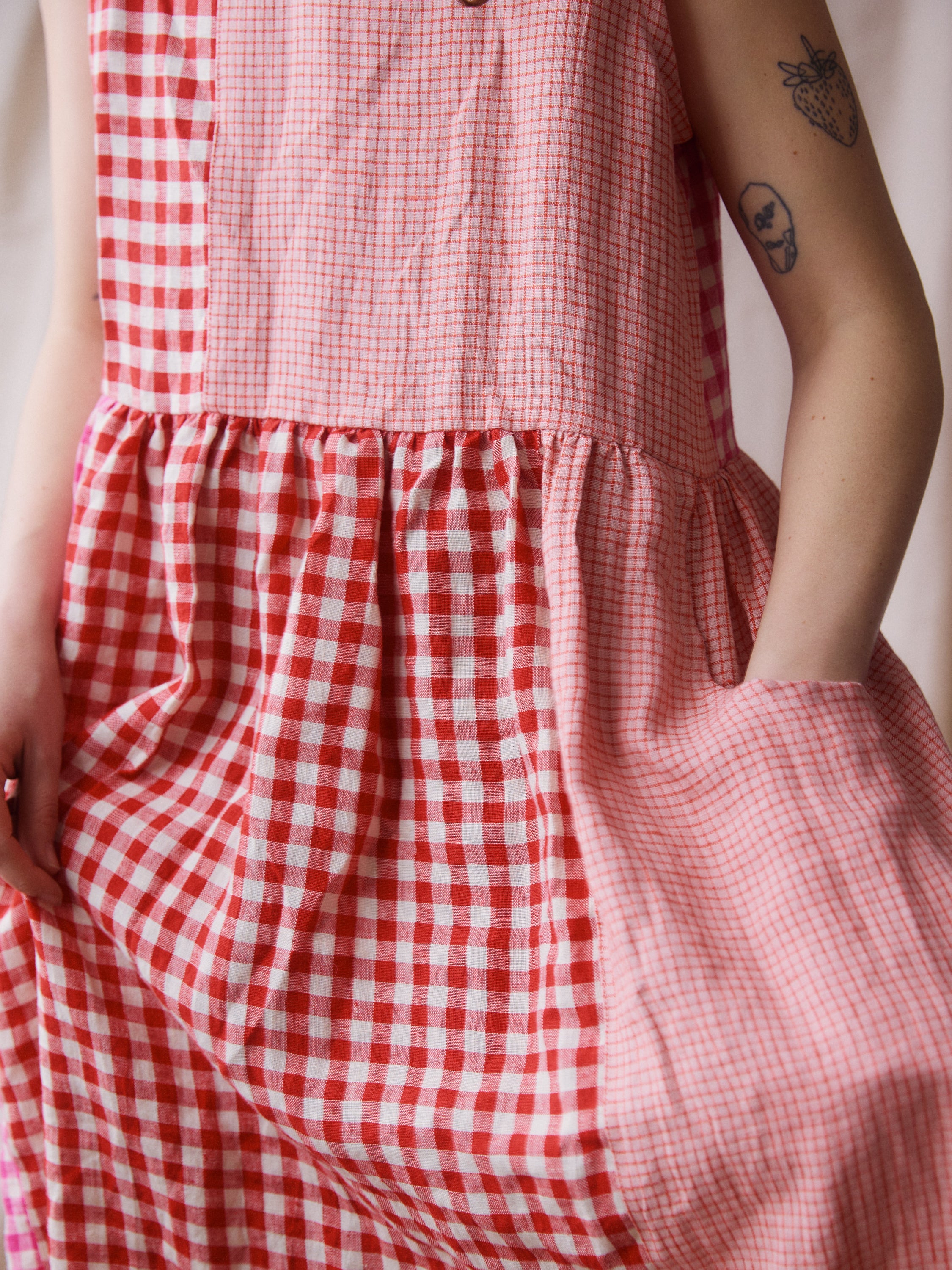 Luna Dress - Pink + Red Patchwork - Small - RTS
