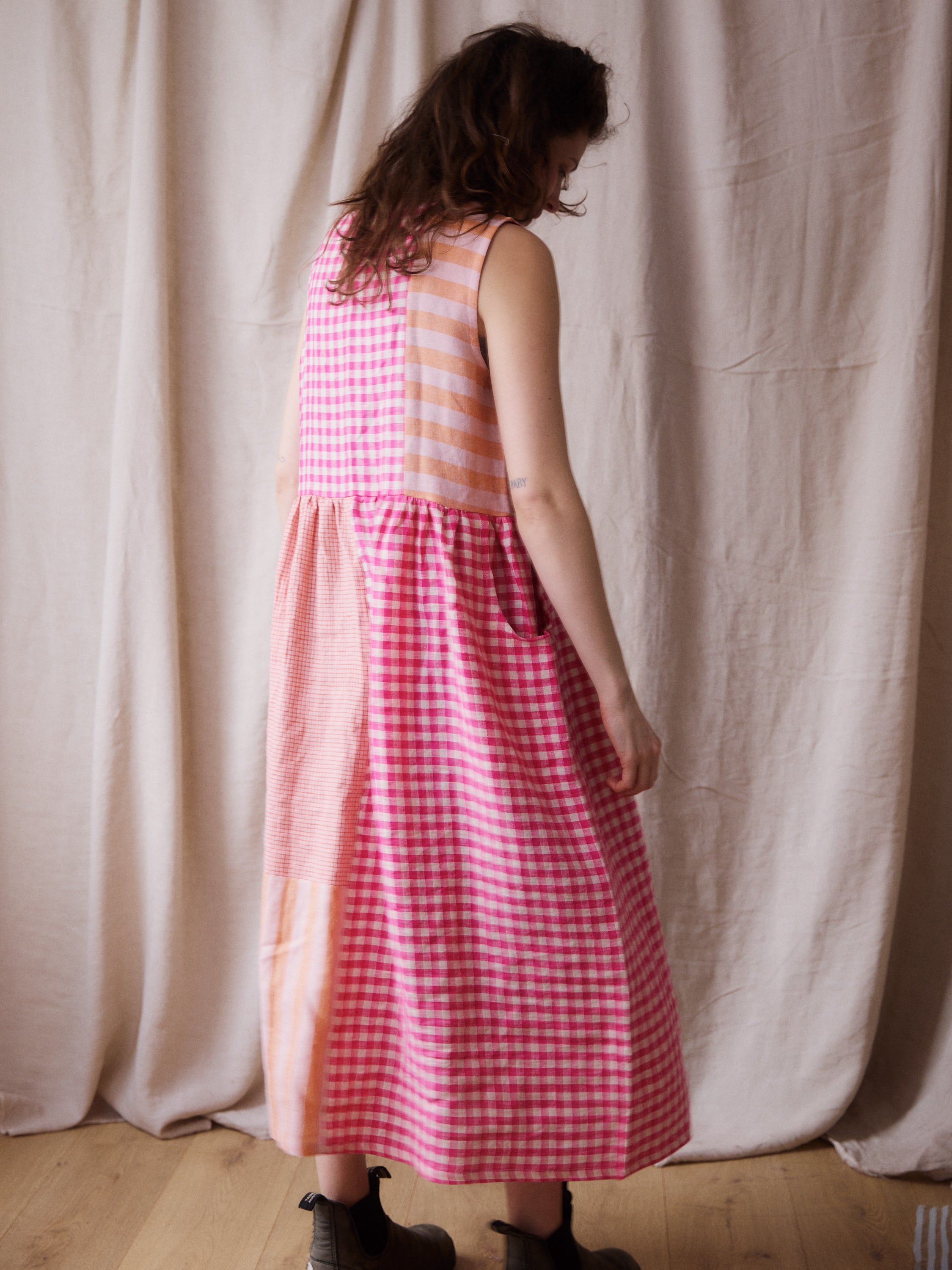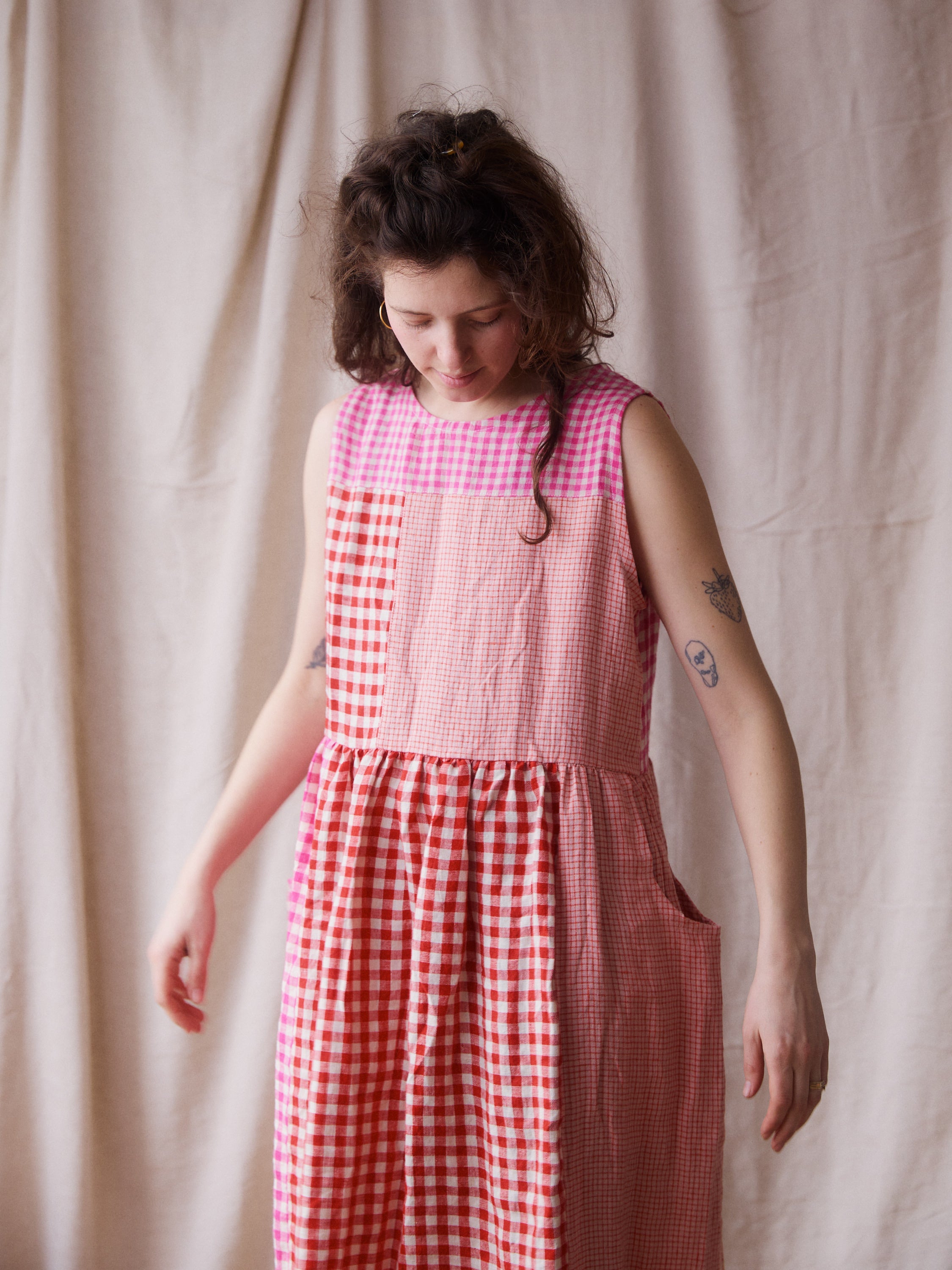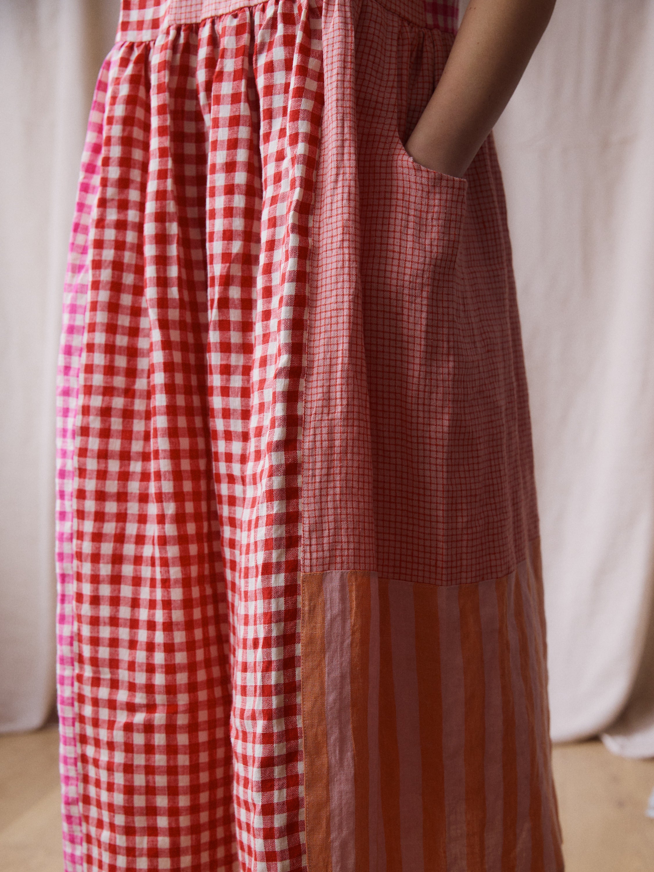 Luna Dress - Pink + Red Patchwork - Small - RTS