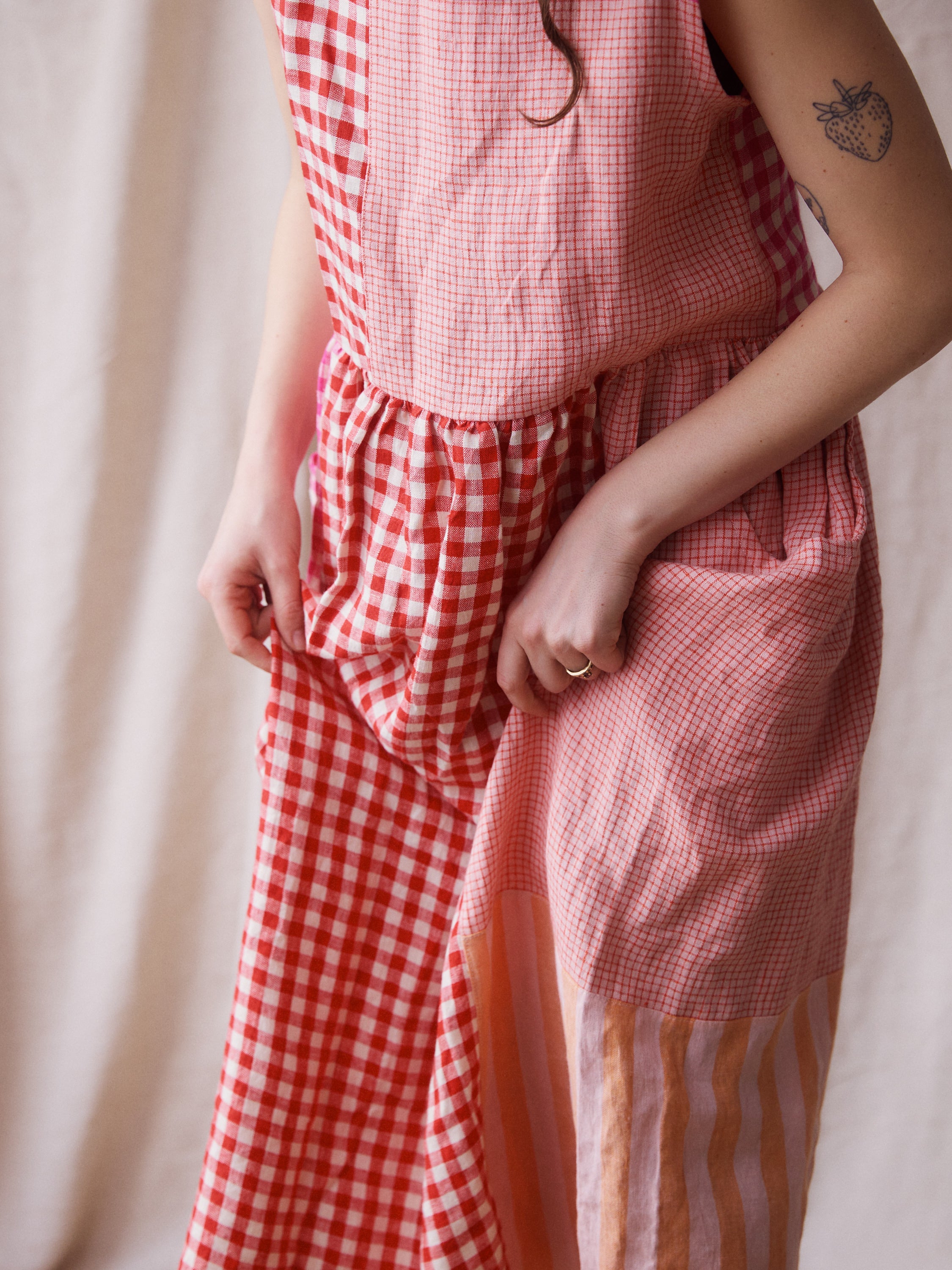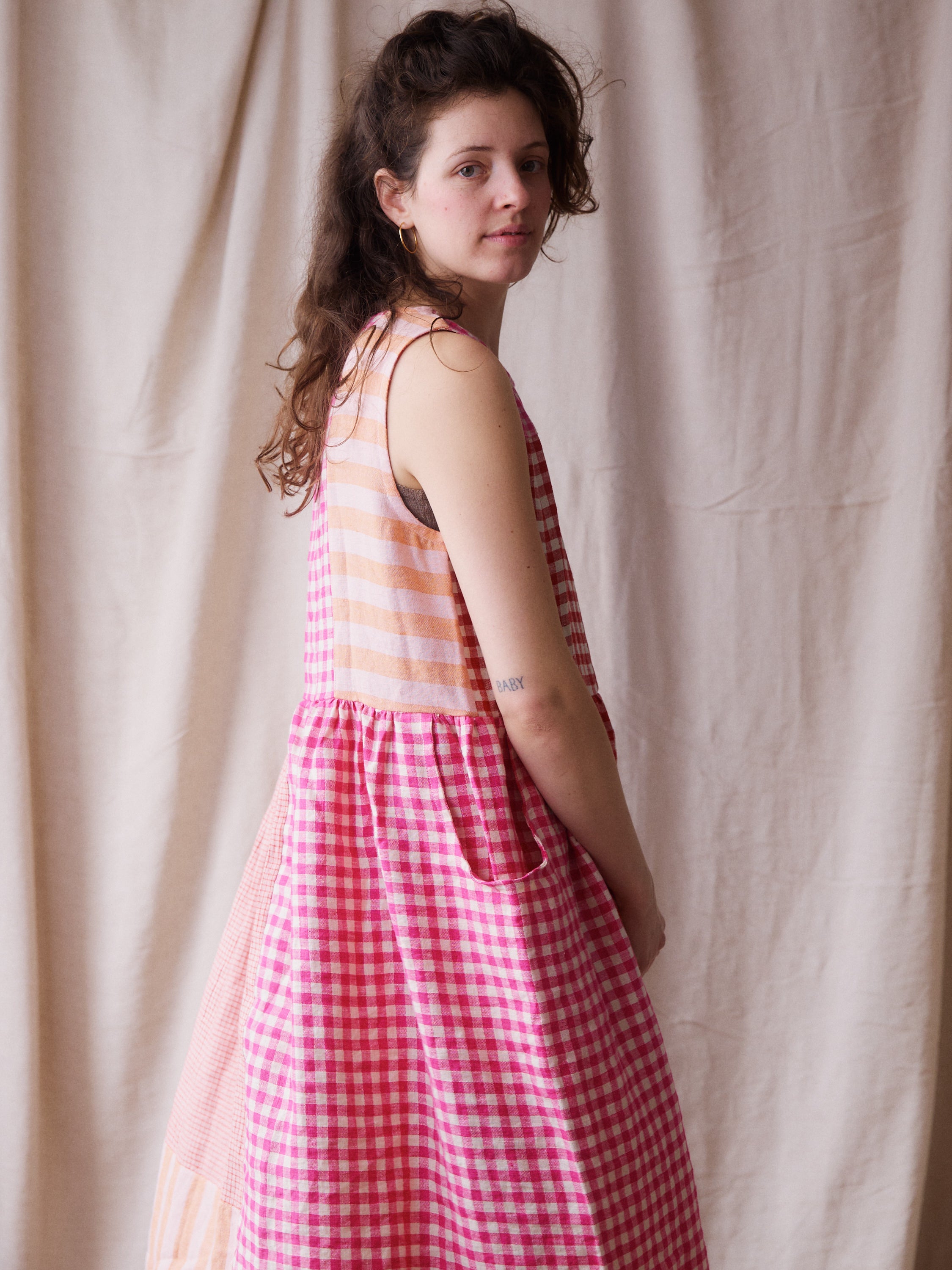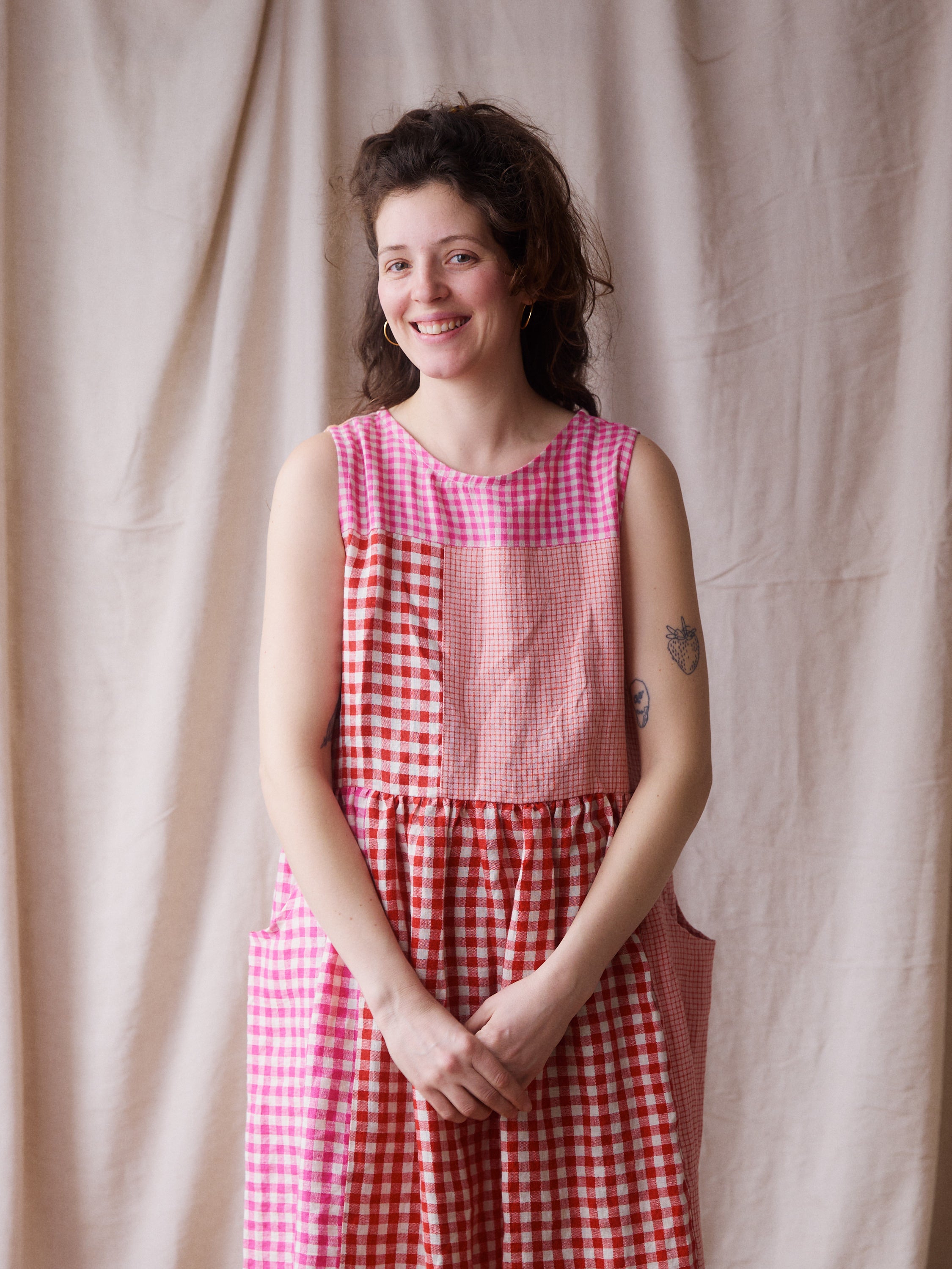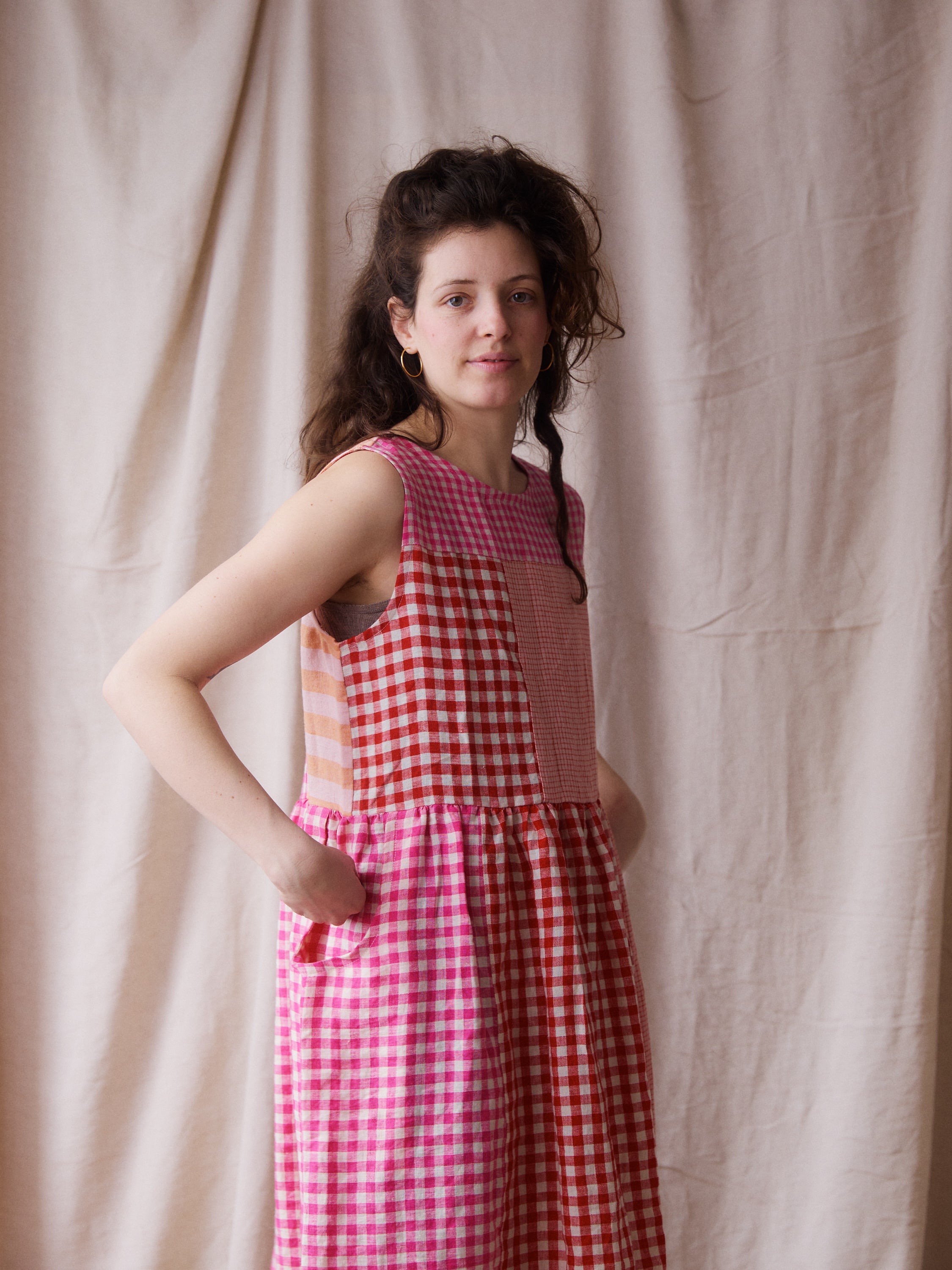 Luna Dress - Pink + Red Patchwork - Small - RTS