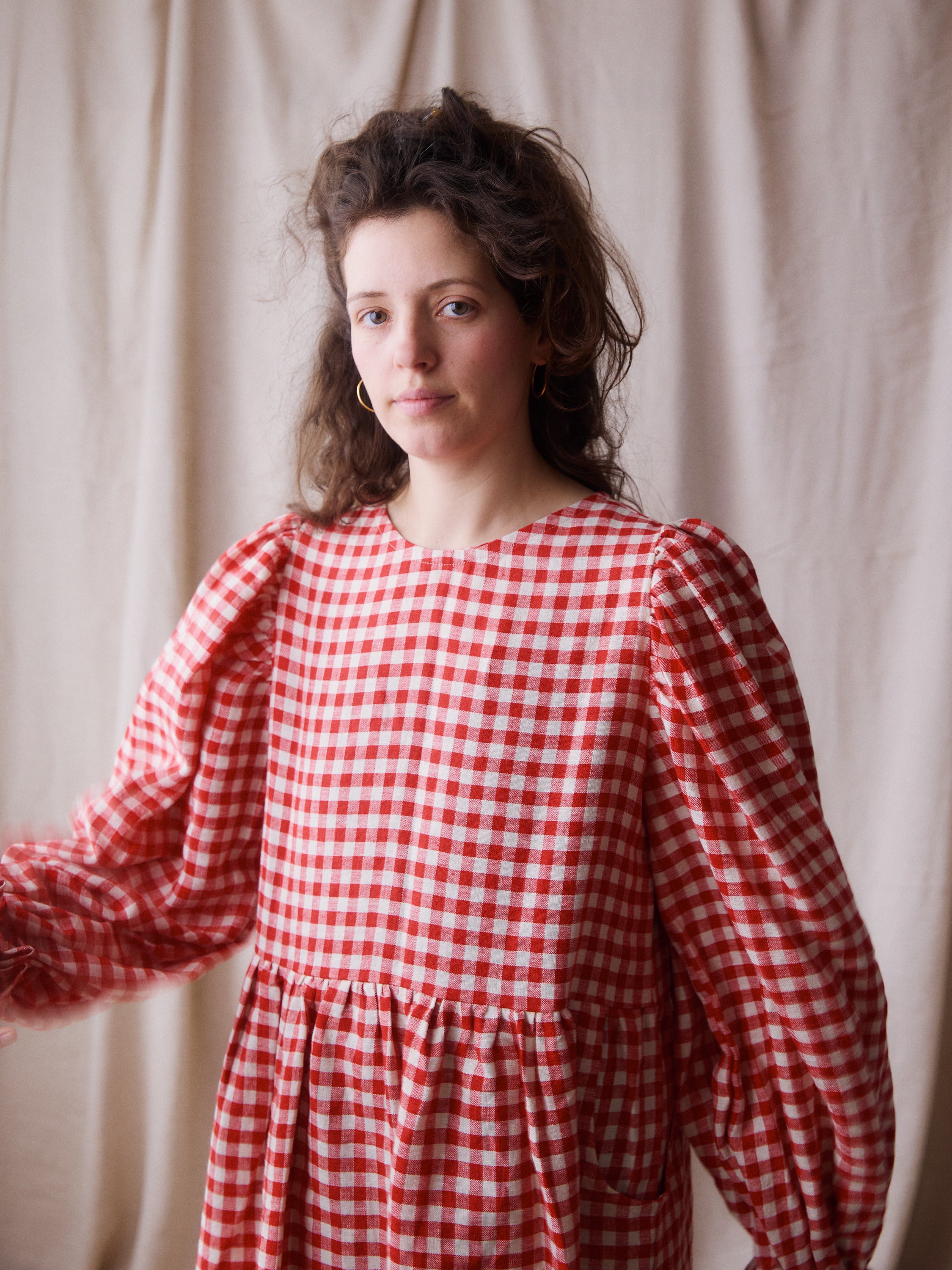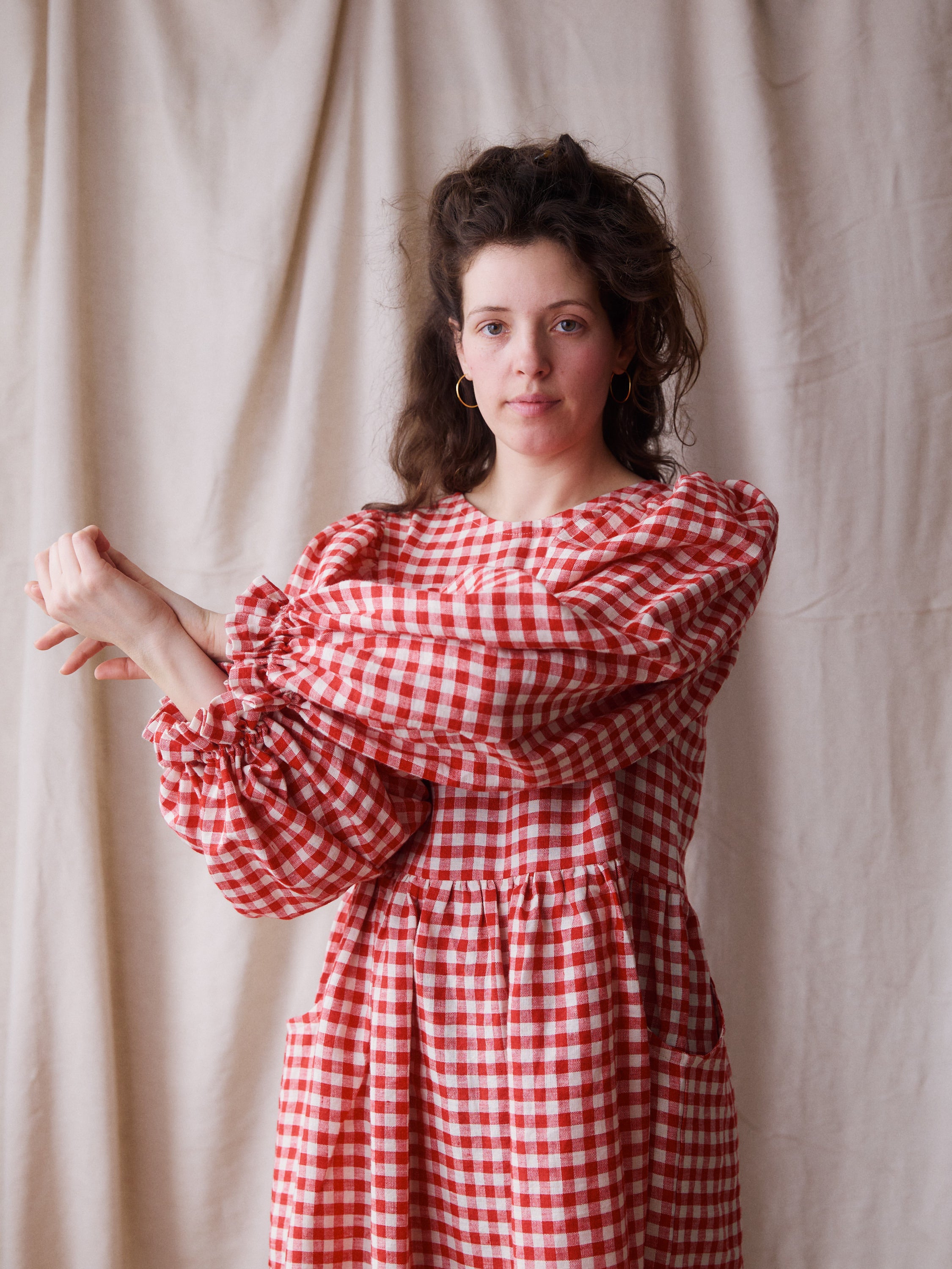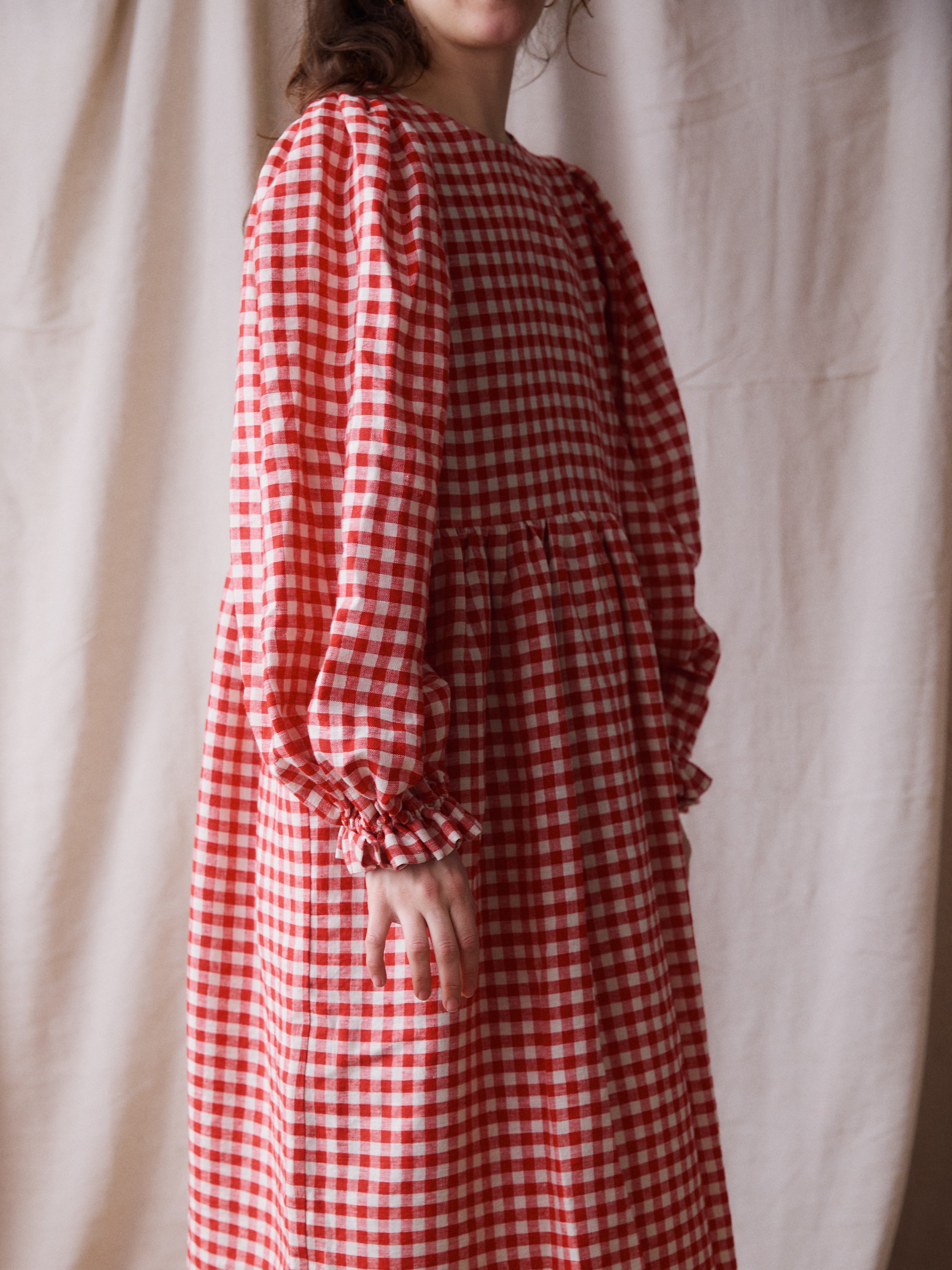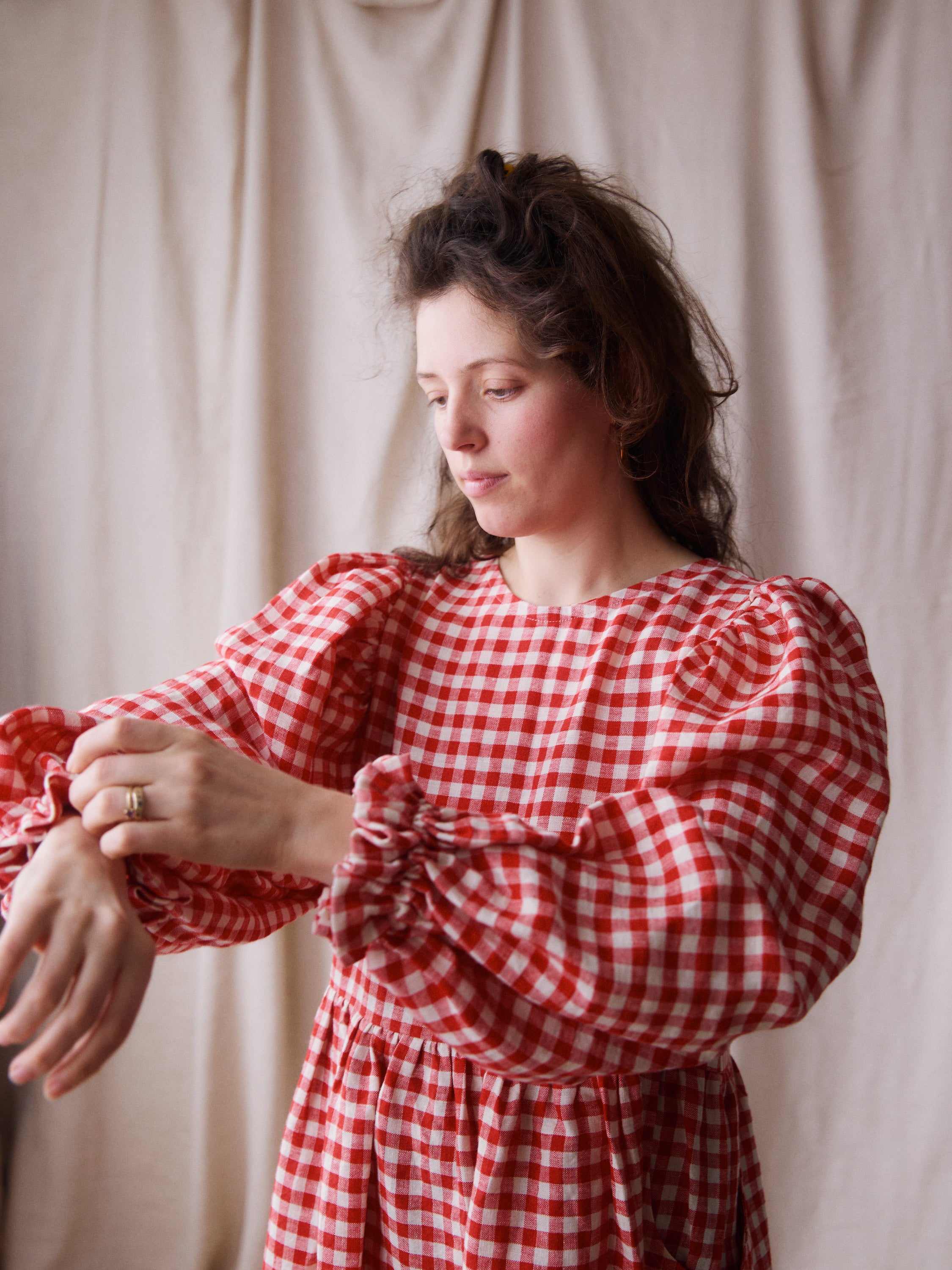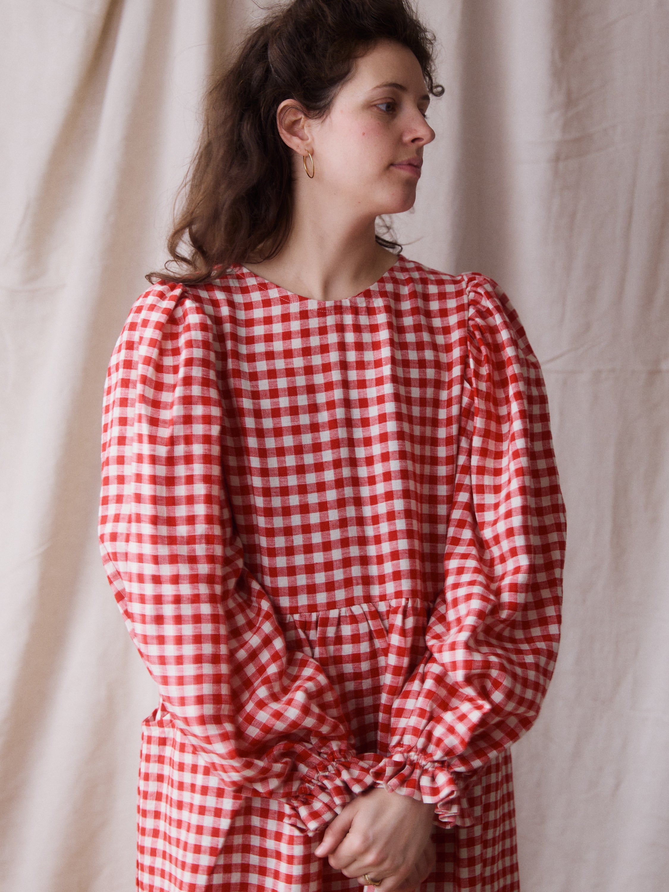 Luna Dress - Red Gingham Linen- BFOsleeves - Small - RTS