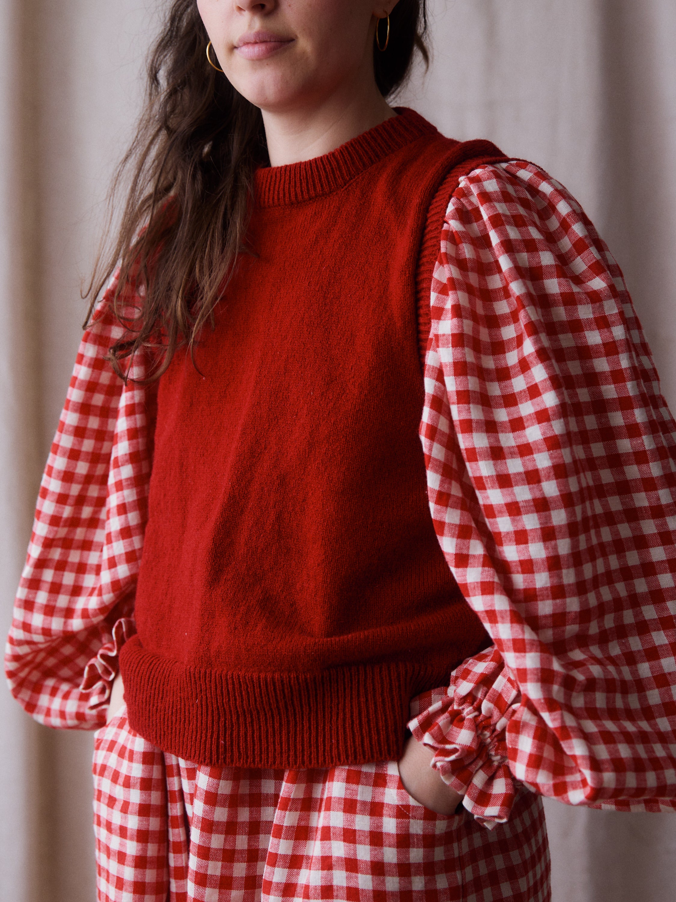 Red Gingham Linen was the first Hero Fabric of 2026, made in Lithuania just for FRL. The red is a deep blue-red (no orange undertones) and it's balanced by a soft cream. A classic gingham!