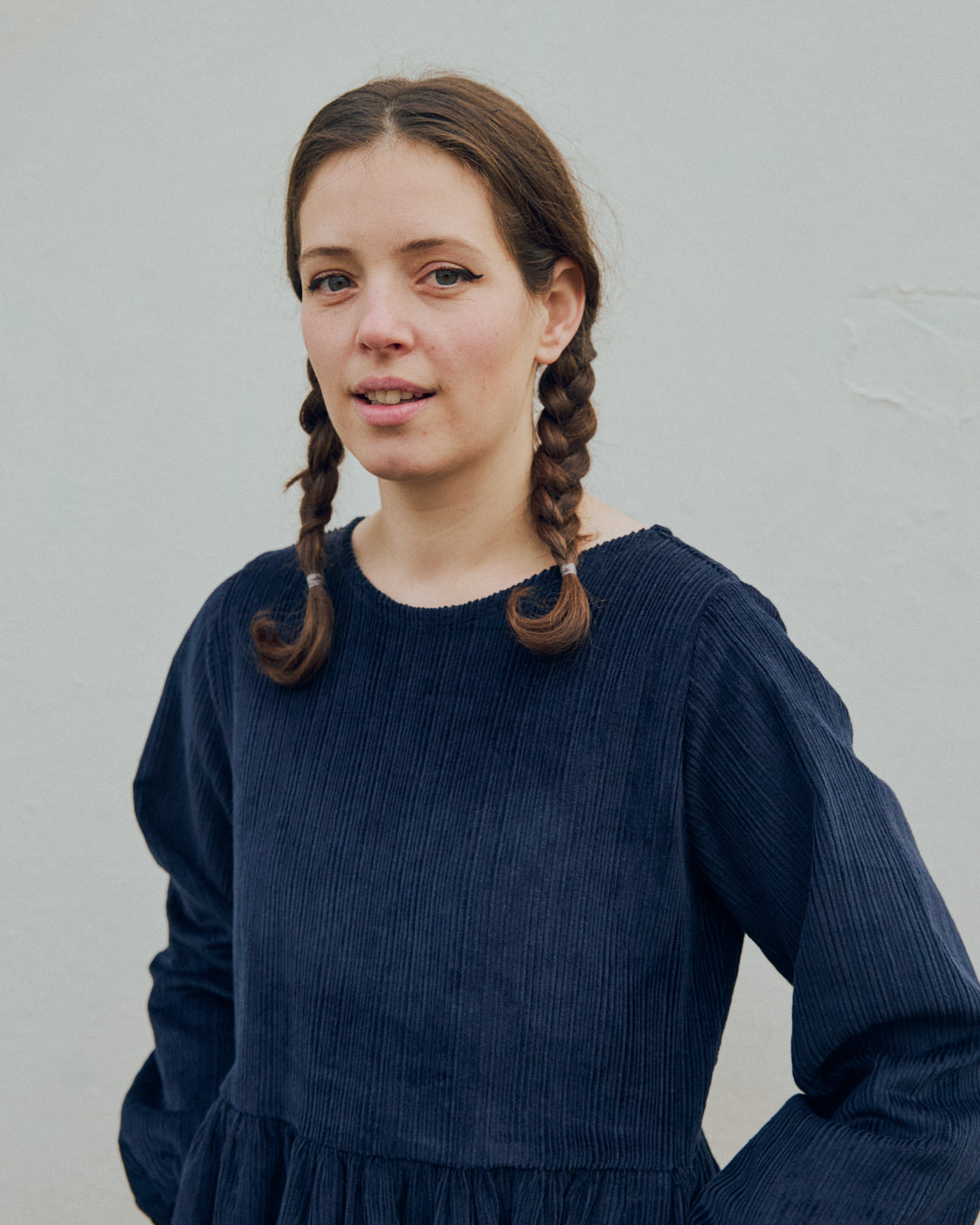 Juicy juicy jumbo corduroy - 100% cotton from one of my suppliers in london. She is quite a thick fabric so best suited to a simple design. Very wearable and easy to dress up and down.